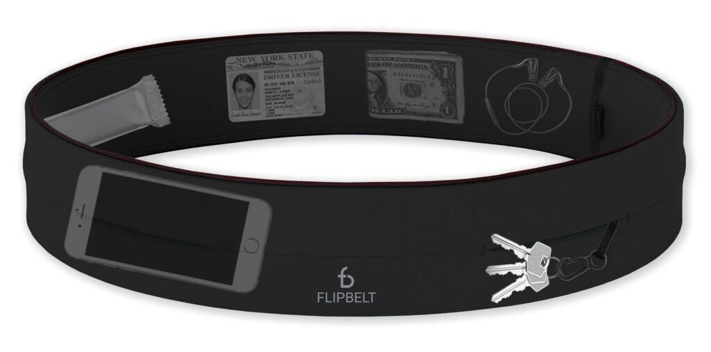 取り出しやすさではジッパー付きのポーチに劣りますが、走行中に頻繁に荷物を出し入れしない用途であれば問題ありません。アームバンドは軽量ですが収納力が限られるため、補給食も持ち運びたいランナーにはFlipBeltが適しています。