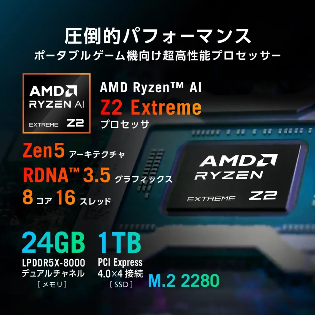 | CPU | AMD Ryzen AI Z2 Extreme(8コア/16スレッド) |