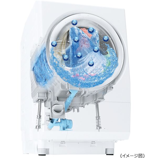 これらの微細な泡が繊維の奥深くまで浸透し、通常の洗濯では落としにくい皮脂汚れや黄ばみの原因を効果的に除去します。さらにAg+抗菌水との組み合わせで、洗うたびに衣類を抗菌。銀イオンユニットは約13年間交換不要なので、ランニングコストも抑えられます。