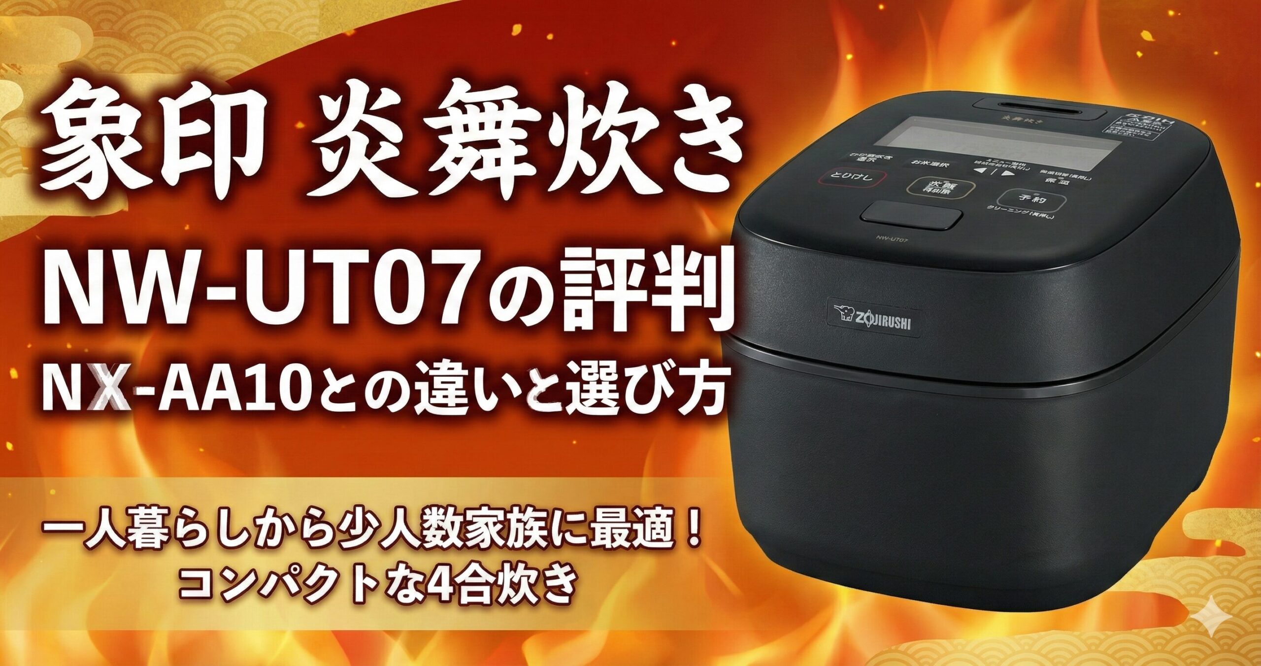 NW-UT07は、象印が2024年1月に発売した「炎舞炊き」シリーズの4合炊きモデルです。炎舞炊きは、象印が50年以上培ってきた炊飯技術の集大成とも言えるシリーズで、かまどの炎のゆらぎを再現した独自の炊飯方式が特徴となっています。